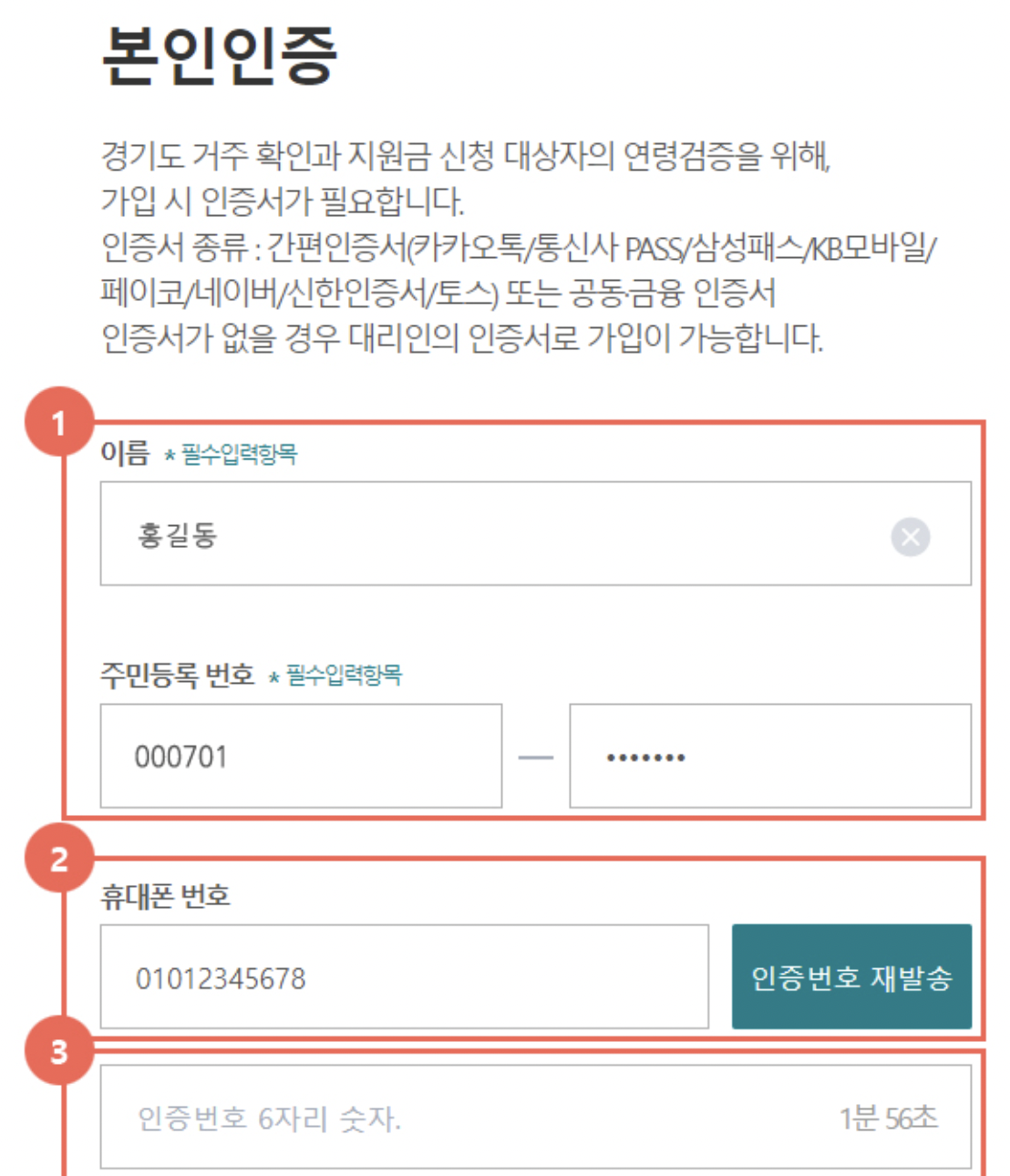 -거주자 인증: 지원금을 신청하기 위해서는 거주지 인증 후에 가능하기 때문에 청소년 본인의 인정서나 등본상 거주지가 동일한 대리인의 인증서가 필요하다)
