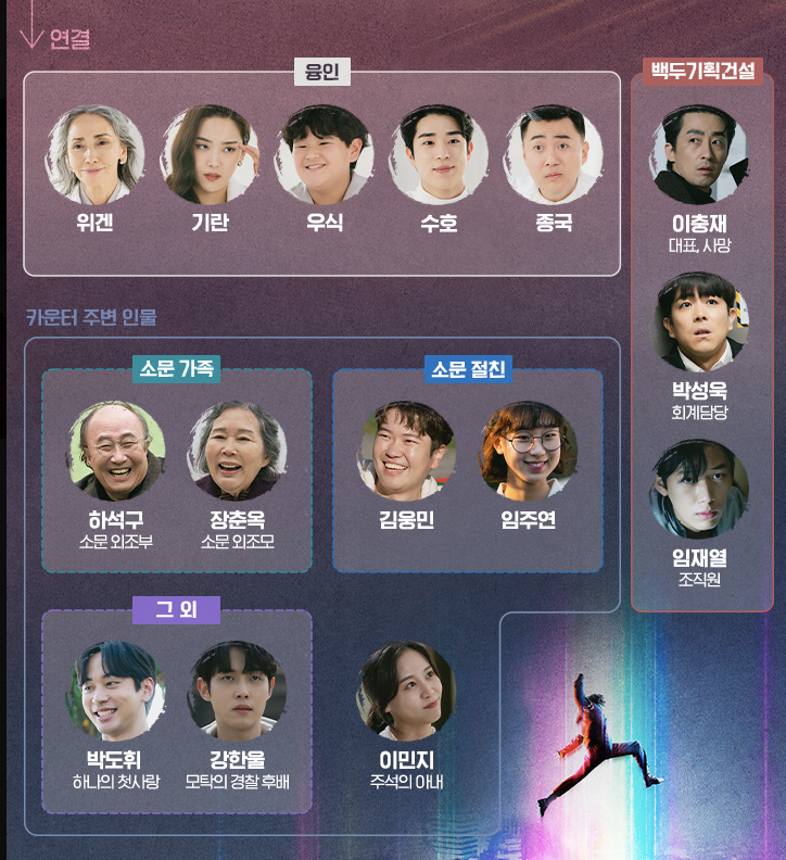 - 출연진: 조병규,유준상,김세정,염혜란,안석환,유인수,강기영,김히어라,김현욱,진선규