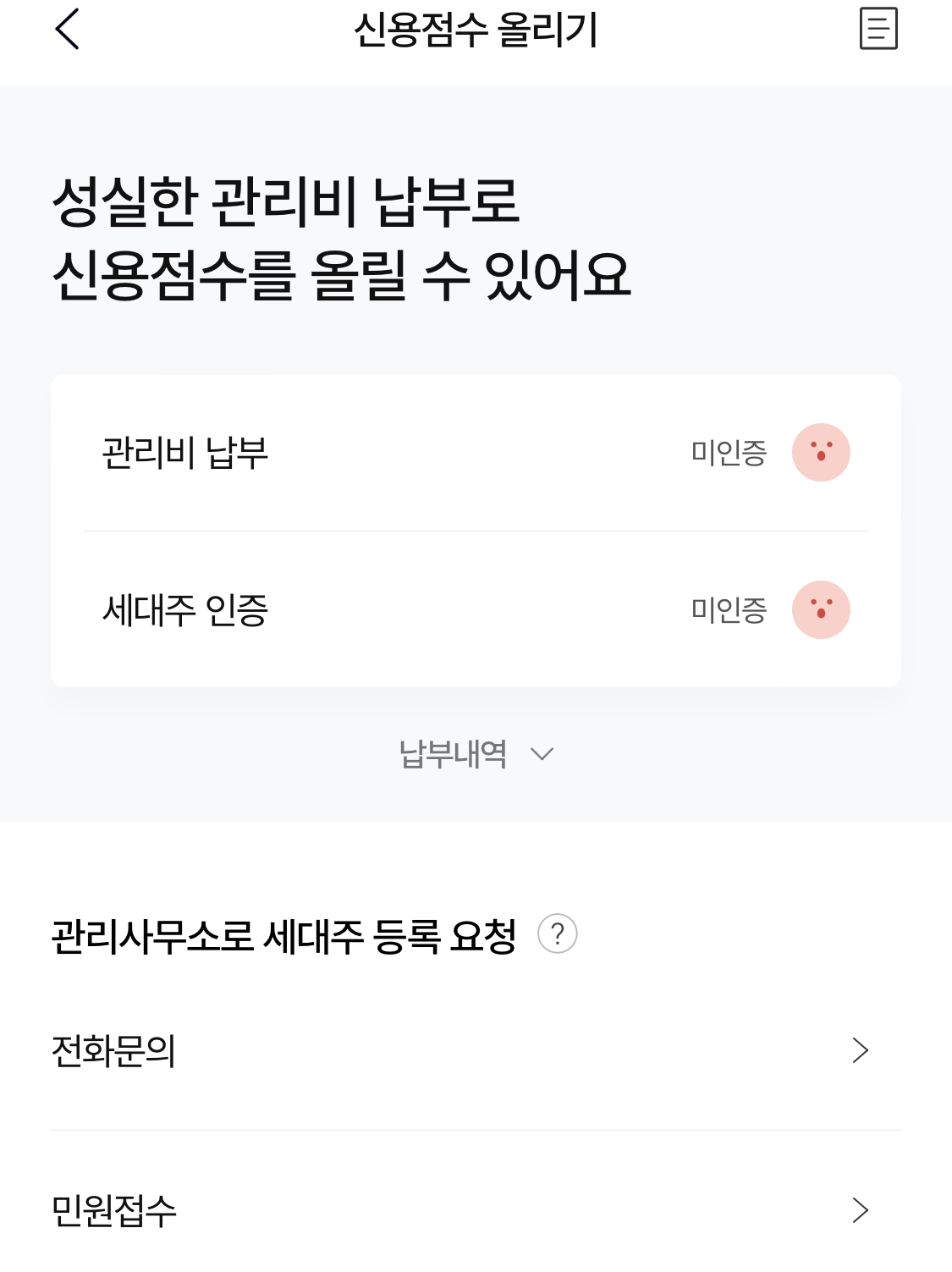 - 최근 6개월 동안 연체없이 관리비를 정상 납부해야만 신용평가사에 제출이 가능하다