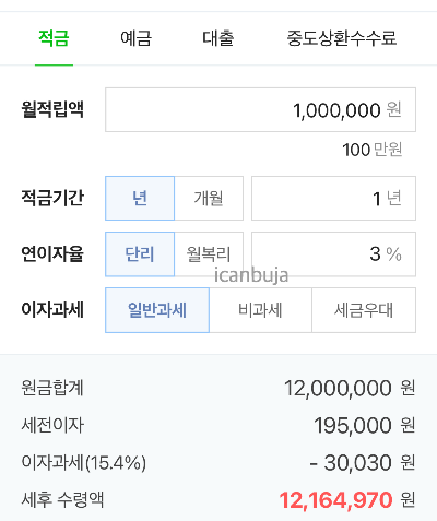 적금과도 비교해보자. 매달 100만원씩 1년간 적립하여 3%를 금리를 받았다 가정하면 세금 15.4% 빼고 세후 금액으로 164,970원이다. 1년간 종잣돈을 묶어 얻을 수 있는 금액의 결과치를 생각하면 예금 적금의 장점이 물론 있겠지만 일정부분 재테크가 필요한 이유이다.