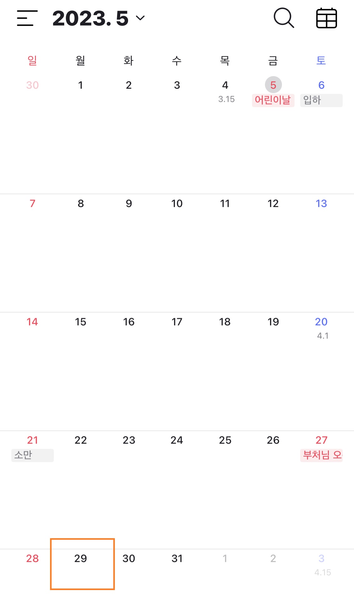 - 부처님 오신날 : 5월 29일(대체공휴일)