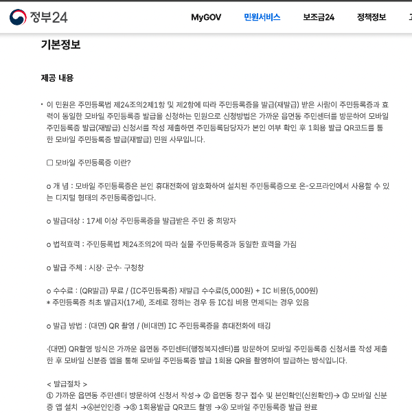 공식 정부 플랫폼에서 안전하게 모바일 주민등록증을 발급받으세요!