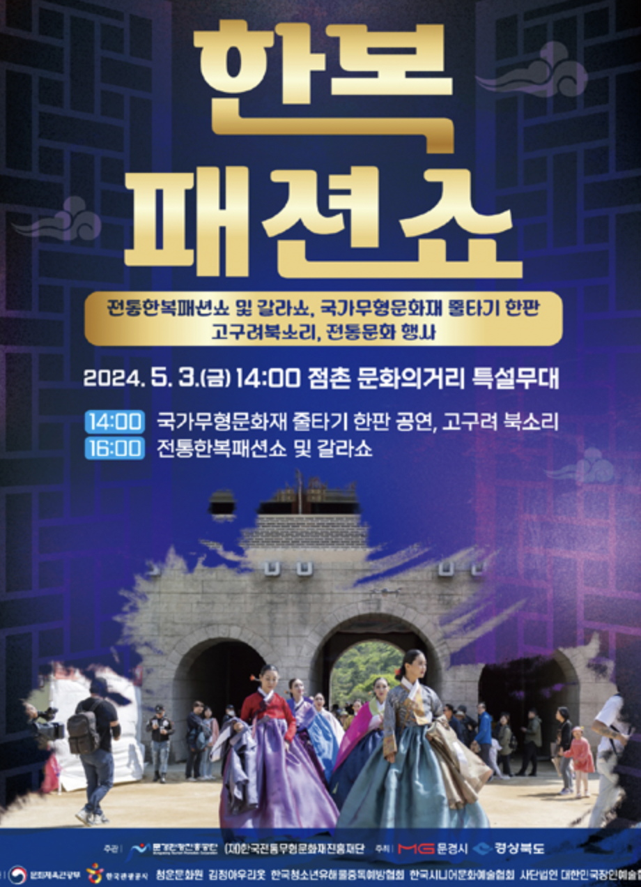 국가무형문화재 줄타기와 고구려 북소리, 전통문화 행사가 2024년 5월 3일 14:00에 점촌 문화의거리 특설무대에서 진행된다.