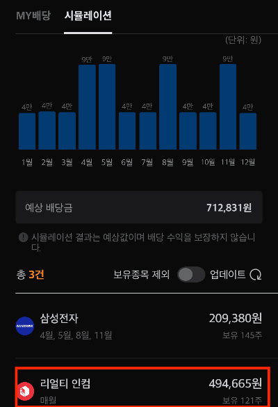 무엇보다 중요한 것은 추후 투자할 자산으로 얼마의 배당을 받을 수 있는지 시뮬레이션 할 수 있다. 노후대책으로 배당금을 계획한 분들이라면 수시로 예상 배당을 관찰하며 전략을 세울 수 있다.