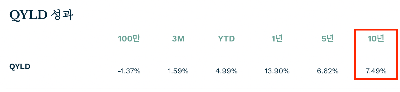 - 커버드 콜 전략: QYLD는 나스닥 100 지수에 포함된 주식들을 보유하고, 해당 주식들에 대한 콜옵션을 매도하여 옵션 프리미엄을 수익으로 얻는다.