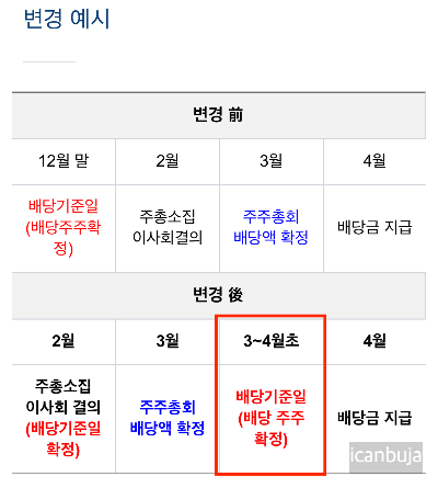 그렇게되면 결산 배당기준일이 12월 말이 아니라 2~3월로 결정이 된다.