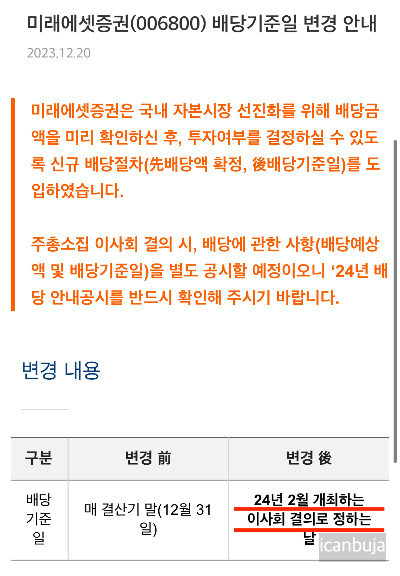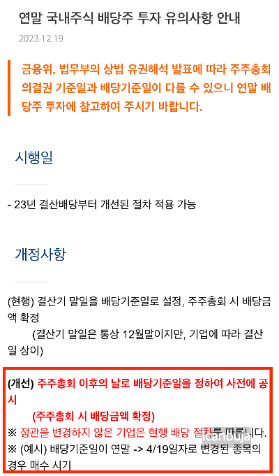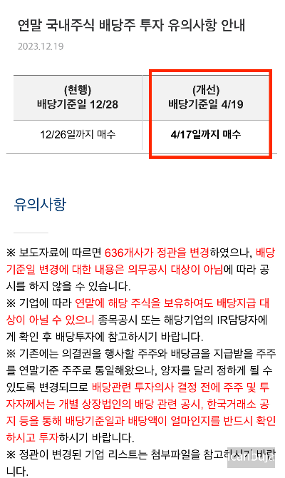 그렇게되면 결산 배당기준일이 12월 말이 아니라 2~3월로 결정이 된다.