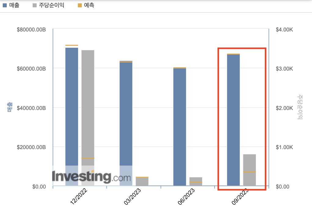 올해 삼성전자는 3분기 기준 매출 60조원 영업이익 6400억을 기록했다. 전년도 대비 매출은 15%증가했지만 영업이익은 오히려 약 14% 줄어든 수치이다.