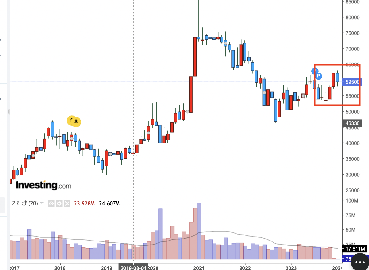 2023년 12월 27일 배당락일로 주식보유시 2024년 4월15일 1주당 362원의 배당금이 지급된다.