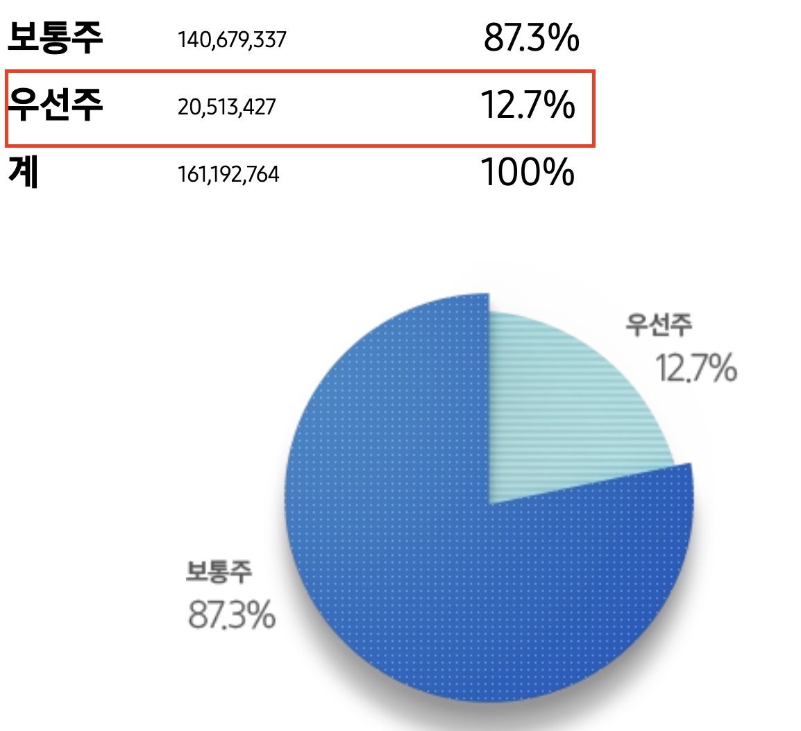 우선주의 경우 의결권이 없기 때문에 배당시 우선으로 조근 더 높은 배당금을 받을 수 있으며 보통주 대비 저렴하게 매수하여 같은 투자금으로 주식수를 늘려 매수할 수 있다는 장점이 있다.