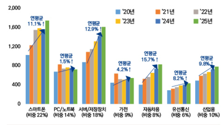 매킨지는 반도체 산업전망 보고서에서 글로벌 반도체 산업이 향후 10년간 꾸준히 성장할 것이며 2030년까지 연평균 6~8% 성장할 것이라고 내다봤다. 작년 반도체 수요가 미진한 것을 생각했을 때 자동차, 데이터 센터, 무선통신 등 자율주행과 차량 전동화로 반도체 탑재 수요가 급증할 것이라고 예상했다.