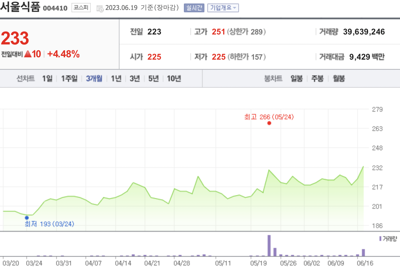 더불어 식품주도 강세를 보이는데 서울식품(4.04%)와 우양(3.01%) 등도 상승세를 보이고 있다.