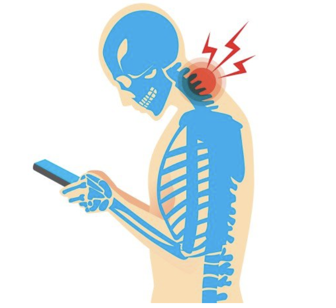 오랜 시간 스마트폰을 보면 눈높이보다 아래로 내려다보는 거북목 증후군을 일으킨다. 잘못된 자세로 인해 목, 어깨근육과 인대가 늘어난 상태로 두통, 어깨통증, 허리 통증을 유발하기 쉽다.