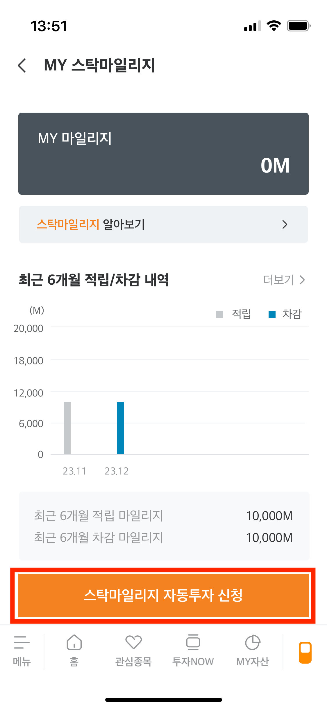 ▶자동투자 신청방법: 관리하기 → 스탁마일리지 → 스탁마일리지 자동투자