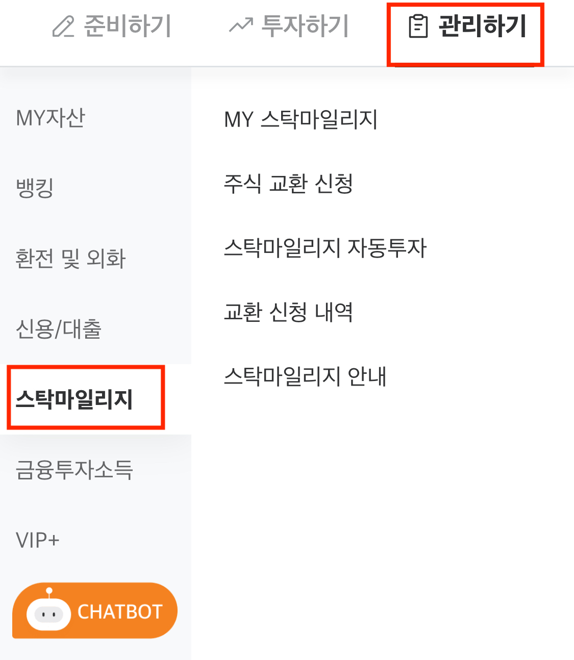 ▶교환 신청방법: 관리하기 → 스탁마일리지 → 주식교환신청