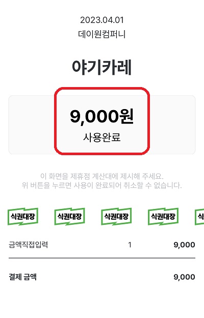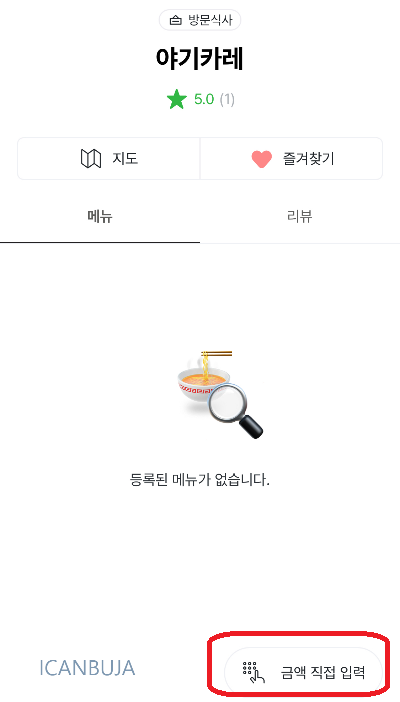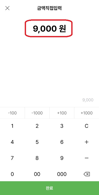 식사 후 금액 직접 입력을 클릭한 후 금액을 넣는다.