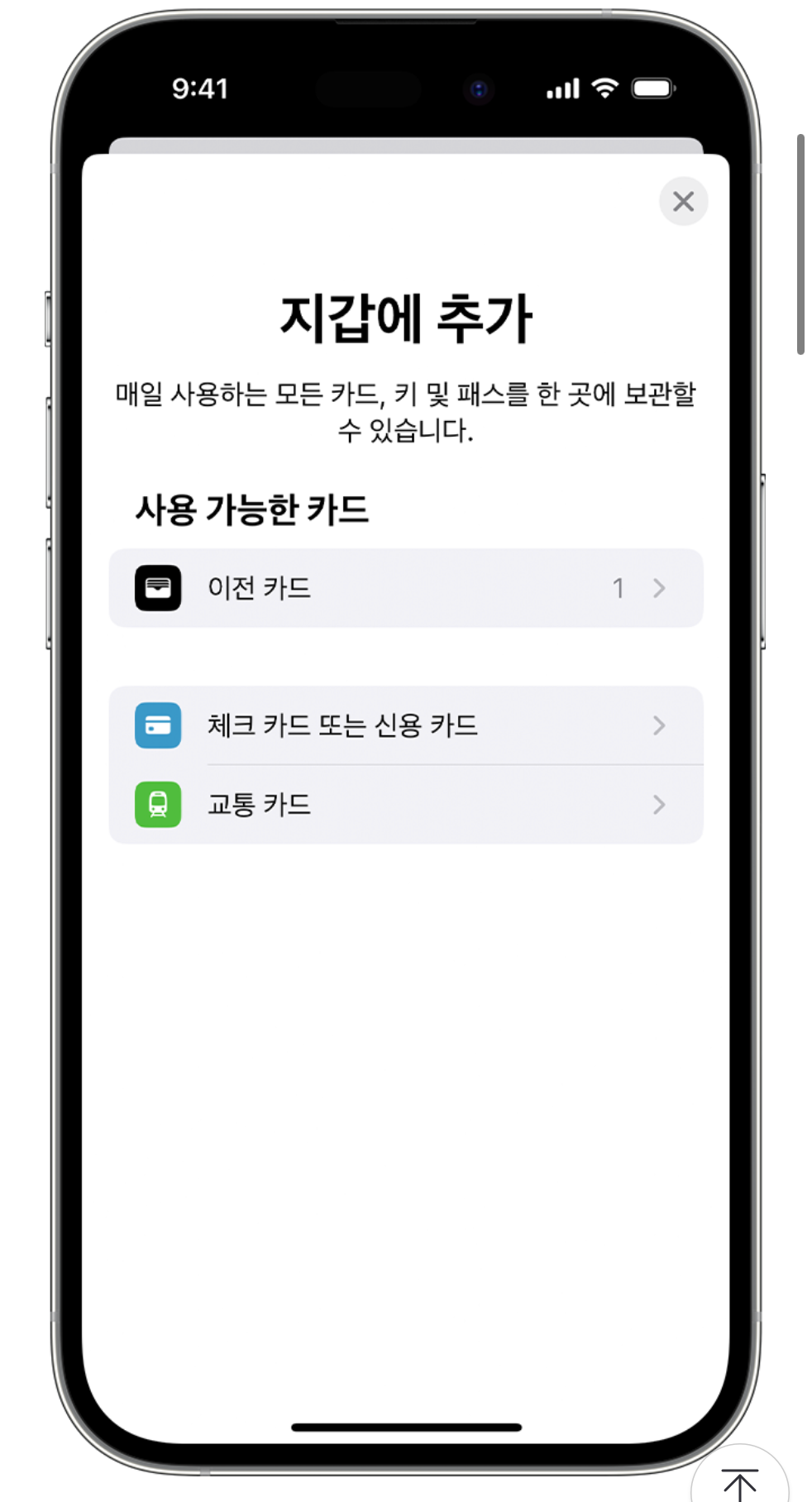 6. 페어링 된 애플워치가 있는 경우 애플 워치에 카드를 추가할 수도 있다