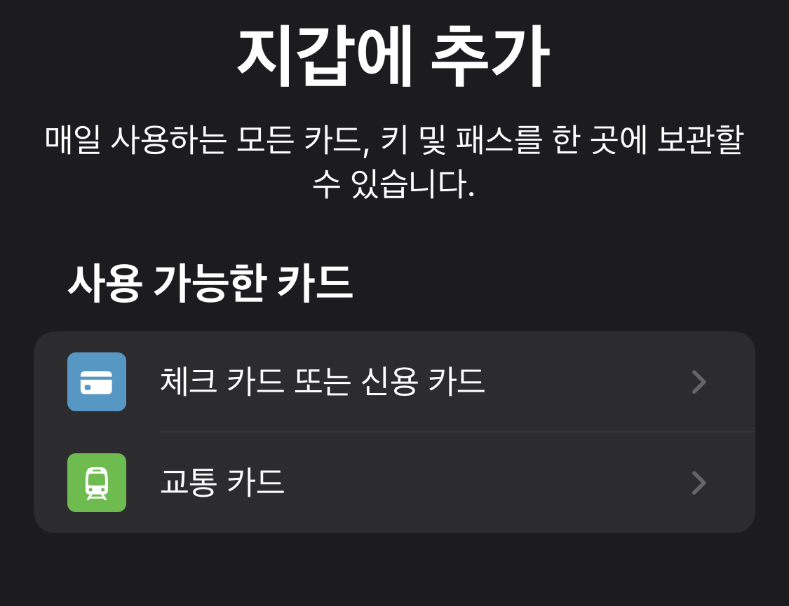 - 체크카드 또는 신용카드를 탭하여 새 카드를 추가한다.