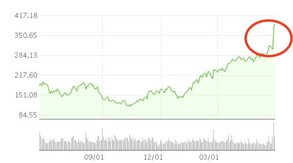 엔비디아의 주가가 크게 오른 배경에는 생성형 인공지능 (AI)의 역할이 가장 크다고 볼 수 있다. 엔비디아의 주가는 어닝 서프라이즈에 힘입어 주가가 20% 넘게 급등했다. 미국 기업 시가총액 증가폭으로 최대이다. 차세대 반도체에 대한 수요가 늘어남에 따라 엔비디아의 몸값이 올라가고 이는 AMD와 TSMD, 애플, 마이크로소프트, 알페벳에 이어 메타 등의 주가에도 긍정적인 영향을 미쳤다.