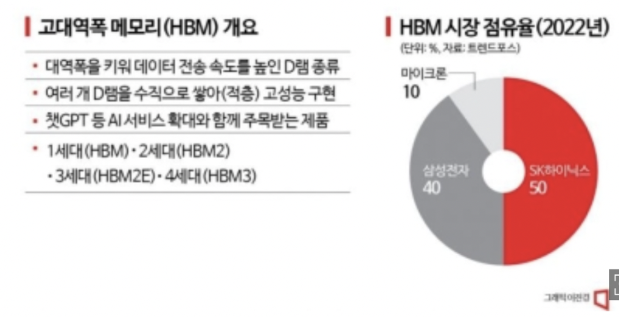 2023년 매출 전망치는 430억 달러인데 4년 후에는 1000억 달러를 돌파할 것으로 보인다. 챗GPT로 인한 장기적인 시장변화가 예상된다. 챗GPT와 같은 생성형 인공지능이 떠오르면서 AI 서버 필수인 그래픽 처리장치(GPU)를 공급하는 엔비디아가 지속적인 수혜를 입을 것으로 보인다.
