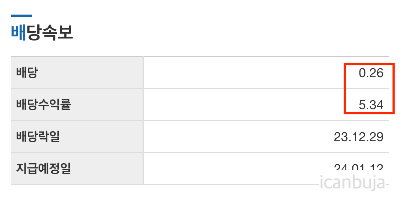 2023년 12월 현재 배당수익률은 5.34%이다. 정기예금과 비교했을 때 시중은행 정기예금이 평균 3.8%로 4%도 안되는 것을 감안하면 5%넘는 수익률 구간은 상대적으로 괜찬아보인다.
