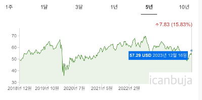 필자는 사전에 생각한 금액 도달시 매수하는 편인데 $ 49 언저리 매수로 현재 12%의 수익률을 달성하고 있다.