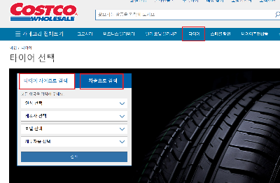 1. 코스트코 홈페이지에 점속하여 타이어 메뉴를 선택한다