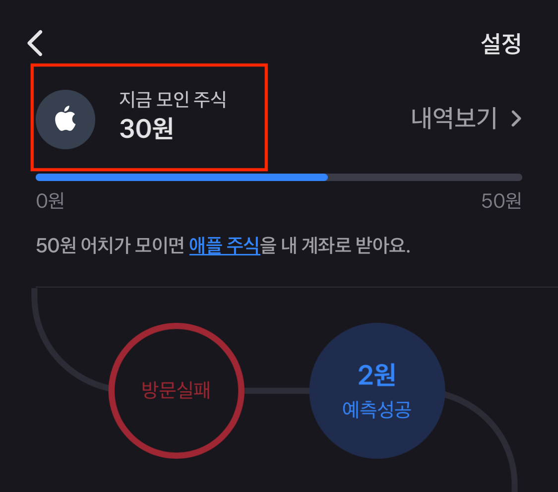 예측이 성공하면 조금 더 많은 금액이 적립된다. 예측에 실패하더라도 적립식을 주기때문에 되도록 매일 출석하시길 바란다.