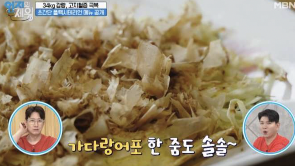 양배추 150g, 달걀 2개, 올리브유 1스푼, 가다랑어포 조금