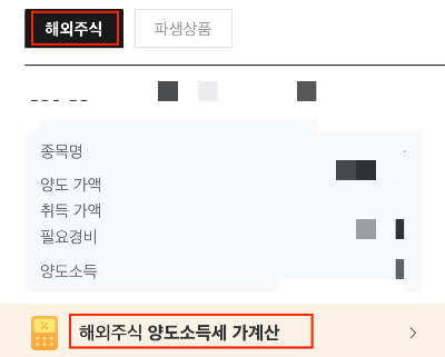 증권사마다 해외주식 양도소득세를 가계산 할 수 있게 설정을 해놓았다.