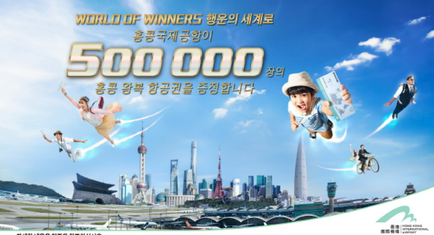 2023년 5월 16일 오후12시부터 ~2023년 5월22일 23:59까지 홍콩이 전세계 여행자를 위해 준비한 50만장 항공권이벤트를 선착순으로 무료 제공한다. 한국 지역 배포수량(약 만장이상) 항공권이 모두 소진되는 경우 조기 종료도니다. 캐세이퍼시픽 인천 출발 홍콩 행 일반석 왕복 항공권 1매(세금 및 유류할증료 제외)이고 당첨된 항공권은 수령일로부터 한달 이내 예약해야한다. 9개월 이내 2~7일 체류일정으로 예약가능하다.
