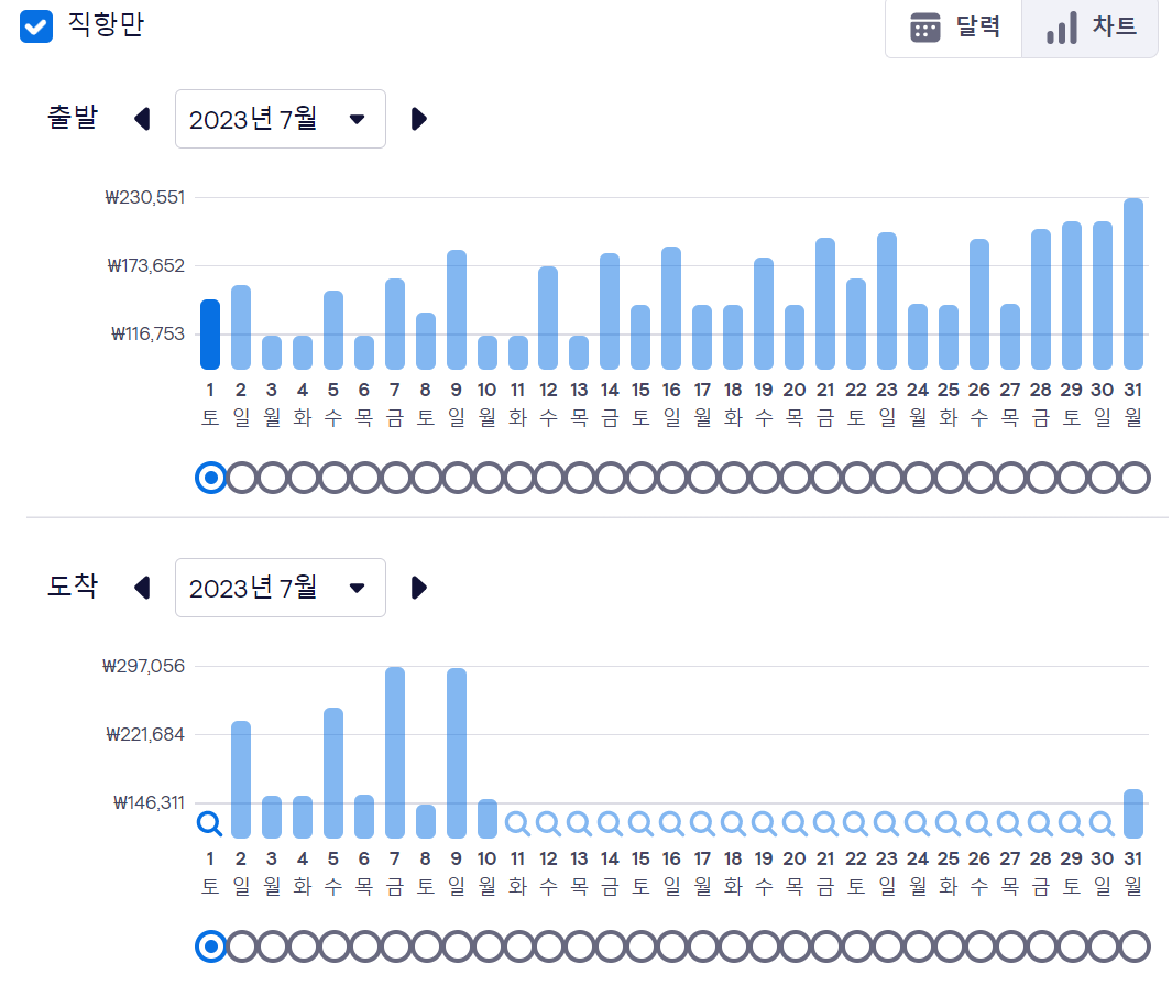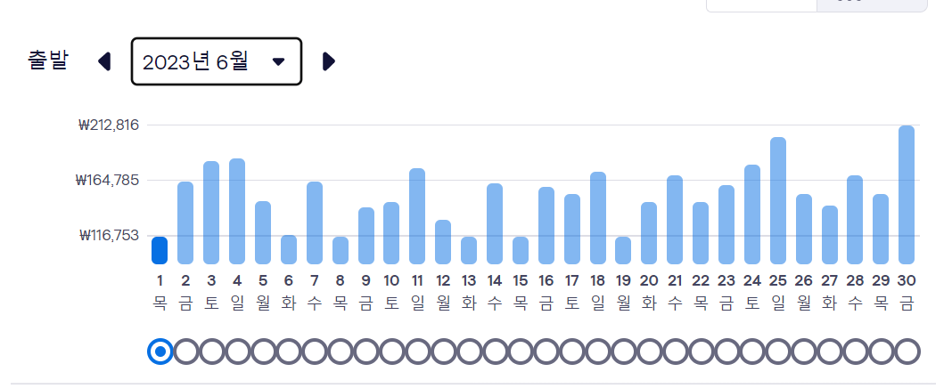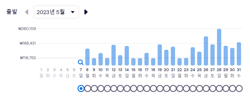 요일로는 금토일보다는 월화수가 비행기표가 싸고 월말보다는 월초가 가격이 싸다.