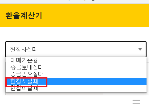 환율의 종류가 거래하는 종류에 따라 4가지로 분류된다. 환율계산기를 이용할 때 이를 체크하고 계산해야 한다.