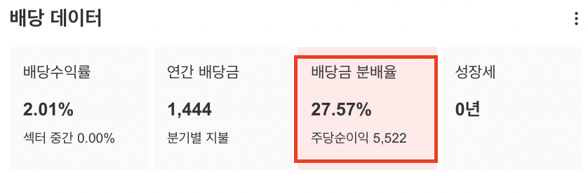 삼성전자의 배당수익률은 2.01%로 연간 배당금으로 보면 1,444원이다. 분기별 올해는 주당 361원을 지급하였는데 배당금 분배율은 27.57%를 기록하고 있다. 배당금 지급율은 어느정도였나