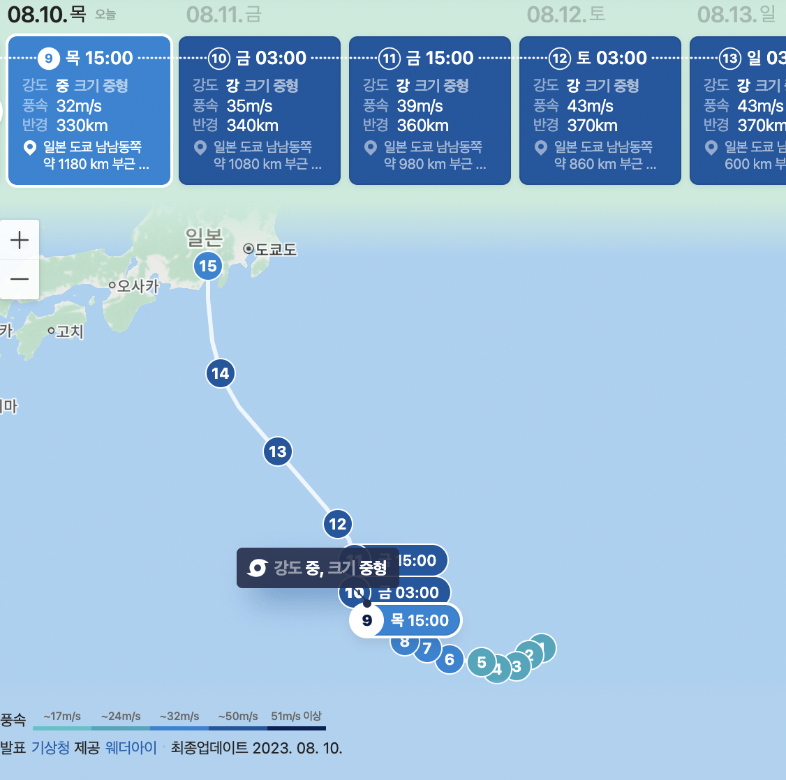 -8월 10일 15시 청주 남동쪽 약 60km부근 육상