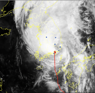 현재 10시 전국에 태풍 특보가 발효된 가은데 동해안을 중심으로 시간당 30~60mm의 매우 강한 비가 그 밖의 지역에 시간당 10~30mm의 강한 비가 내리는 곳이 있으며 제주도와 경상권동해안을 중심으로 최대 순간 풍속 90km/h내외의 매우 강한 바람이 부는 곳이 있겠다.
