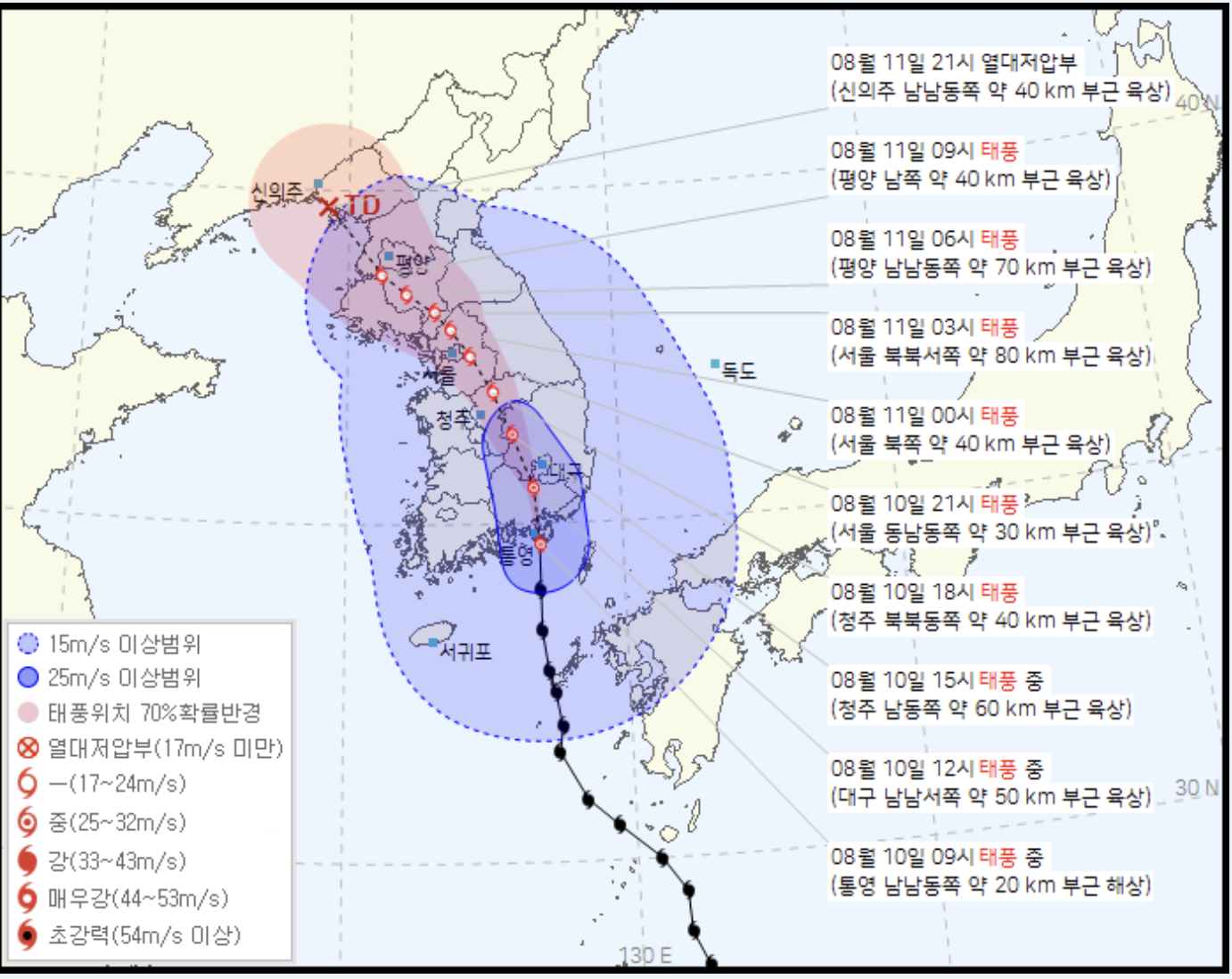 -8월 10일 21시 서울 동남동쪽 약 30km부근 육상