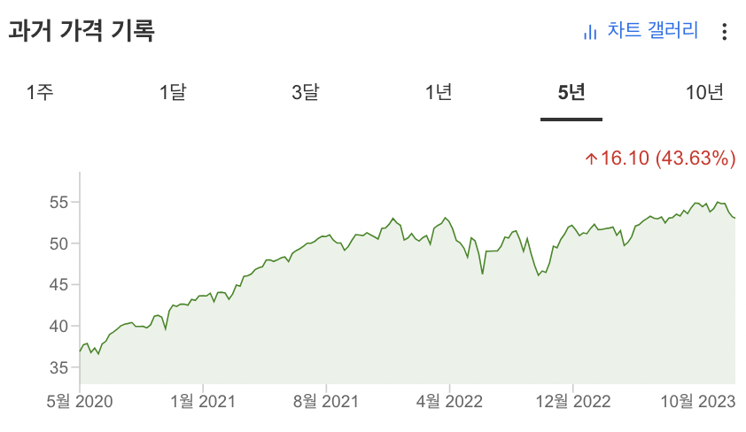 JEPI의 주가는 2023년 10월8일 현재 1주당 52.99달러이며 52주 최저가 49.92달러 52주 최고가 56.92달러이다. 최근 2년간 횡보하고 있지만 5년 주가를 보면 소소하게 상승하고 한 모습을 볼 수 있다. 배당주 거의 모든 종목들이 주가가 하락장일 때 크게 떨어지지 않고 주가가 상승장일 때 하락한다. 일반 종목과는 차이점이 분명히 있으니 매수하시기 전에 이러한 특성들을 이해하시고 숙지하시기 바란다.