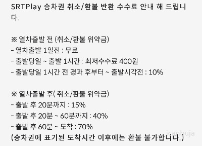 srt 취소 환불 수수료는 열차출발전과 열차출발 후로 다르다.