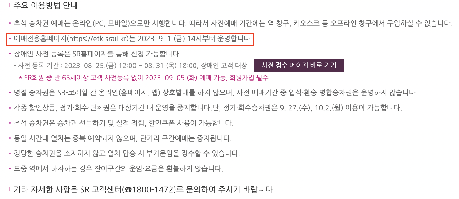 srt 명절예매 페이지 안내