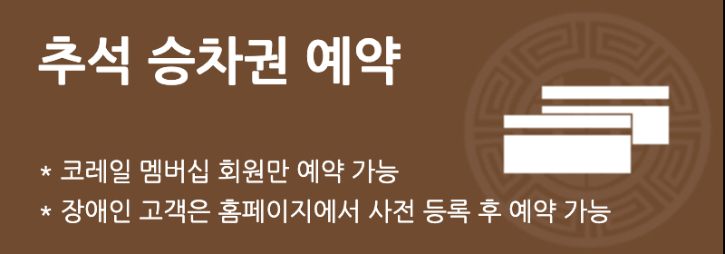 👉 경로 ,장애인은 명절 예매 전용 홈페이지에서 사전 정보를 미리 저장하고 예매 당일 불러오기 기능을 이용하시기 바란다.